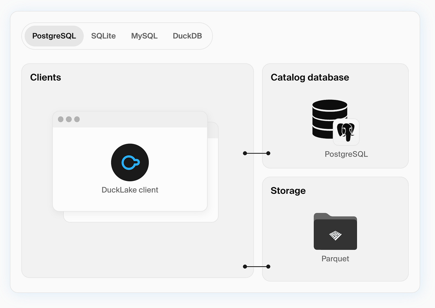 That’s what the official Ducklake website says. In my own words, DuckLake is a new, open source lakehouse table format powered by the Parquet file format and a SQL transactional database like Postgres.