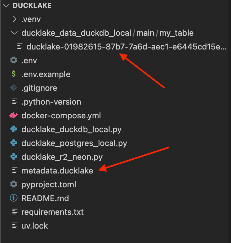 And that is the easiest and quickest way to play with DuckLake, using your local filesystem (for storing parquet files) and DuckDB (metastore). I literally encountered zero errors or issues running this script at my first try. For any production use case, you’d likely be using something like S3 and Postgres database instead. Which I’ll show you a simple example in a moment.