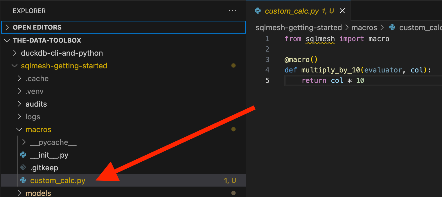 big_value` column. The reason is that the way we can reference custom Python macros in a Python model is a bit cumbersome (as of this writing). If you want, here’s how you do it:import your macro function like you import a Python function in your Python model.