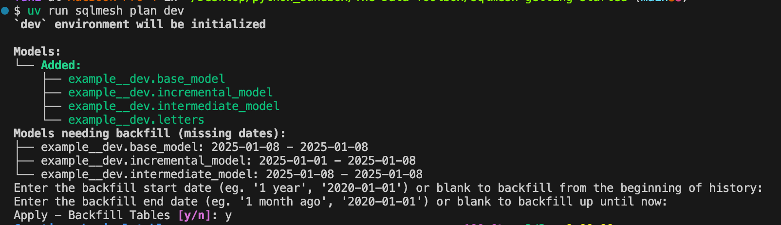 └───────┴─────────┴───────┴──────────────┘Initializing Your SQLMesh Project