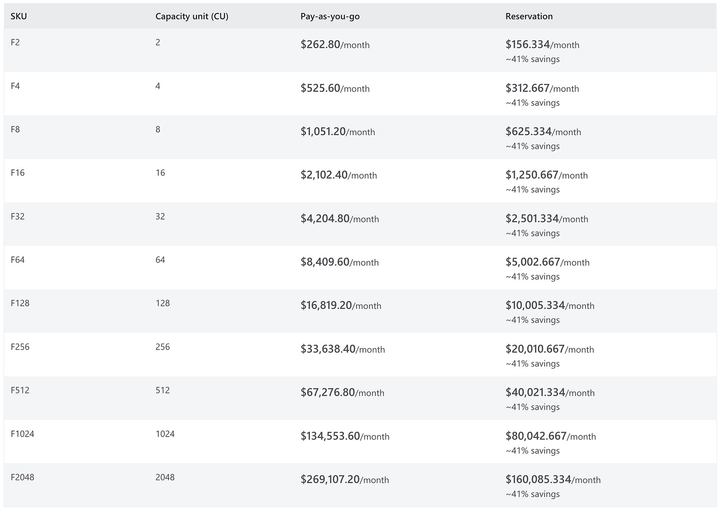 There is no true pay-as-you-go pricing option that other vendors like Databricks and Snowflake offer. With Fabric, you have to pay first to get your capacity. If your utilization is lower than the capacity you bought, you still pay the full price. Where other vendors allow you to pay less when you use less and pay more when you use more.